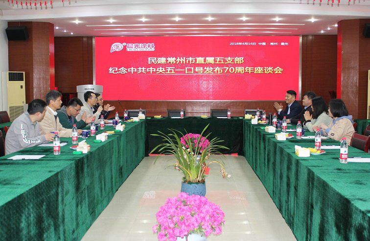 4月14日,民建常州市直属五支部纪念中共中央五一口号发布70周年座谈会,在江苏常州壹号娱乐-com - NG大舞台,有梦你就来工业园召开,民建五支部成员共聚一堂,回顾历史,追忆过往年代的奋斗历程,同时,也结合现今社会的进步,力求在新时代发展背景下,牢记使命,有所作为。