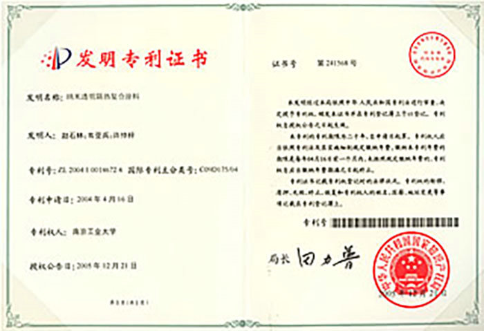 纳米透明隔热复合涂料,专利号:ZL200410014672.4