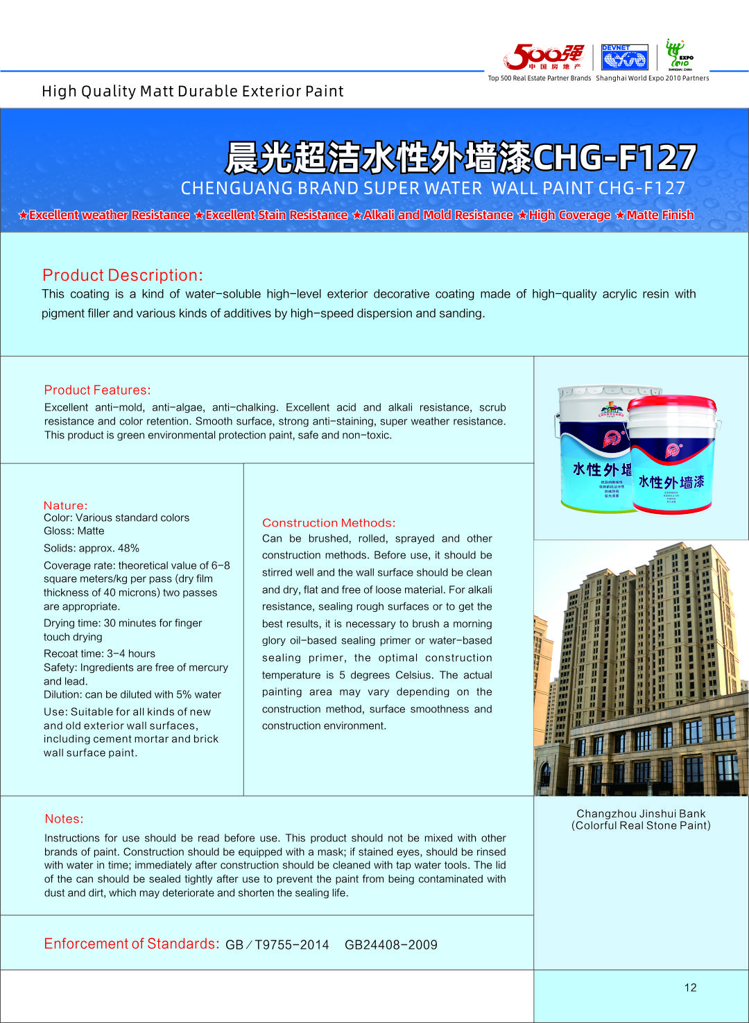 ★Excellent weather resistance ★Excellent stain resistance ★Alkali-resistant and anti-mildew ★High coverage ★Matte finish